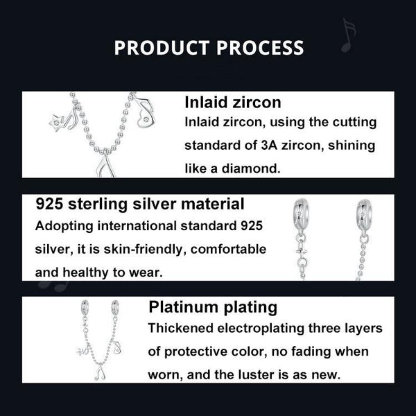 S925 Sterling Silver Platinum-plated Note Shape Safety Chain Jewelry Pendant Accessories(SCC2871)