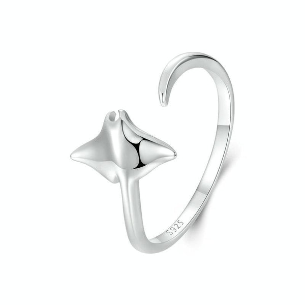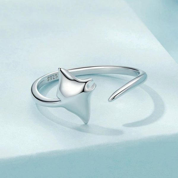 S925 Sterling Silver Platinum-Plated Ocean Manta Ray Adjustable Open Ring(SCR1037-E)