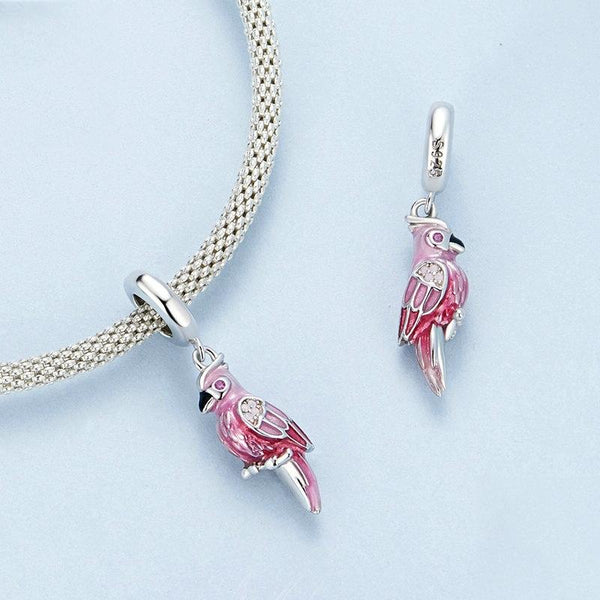 S925 Sterling Silver Platinum-plated Pink Gradient Parrot Jewelry Pendant(BSC971)