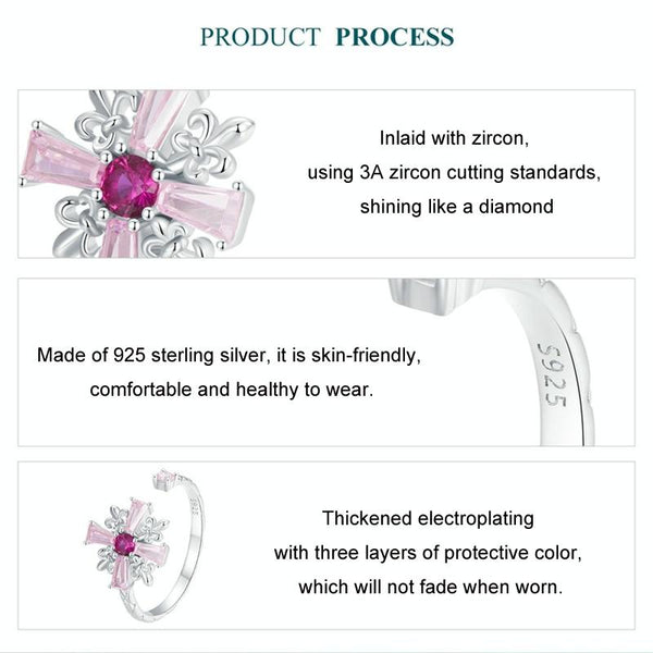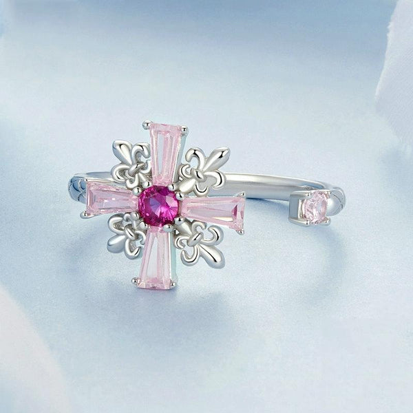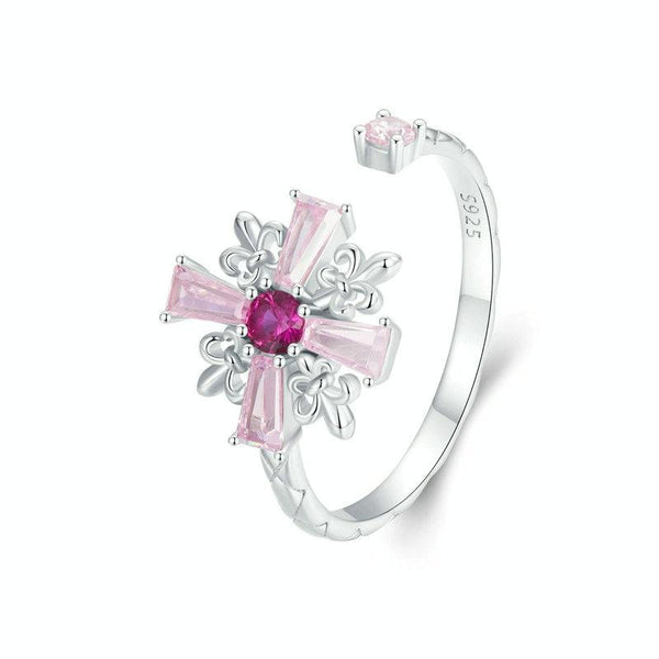 S925 Sterling Silver Platinum-plated Pink Iris Cross Open Ring(BSR526-E)