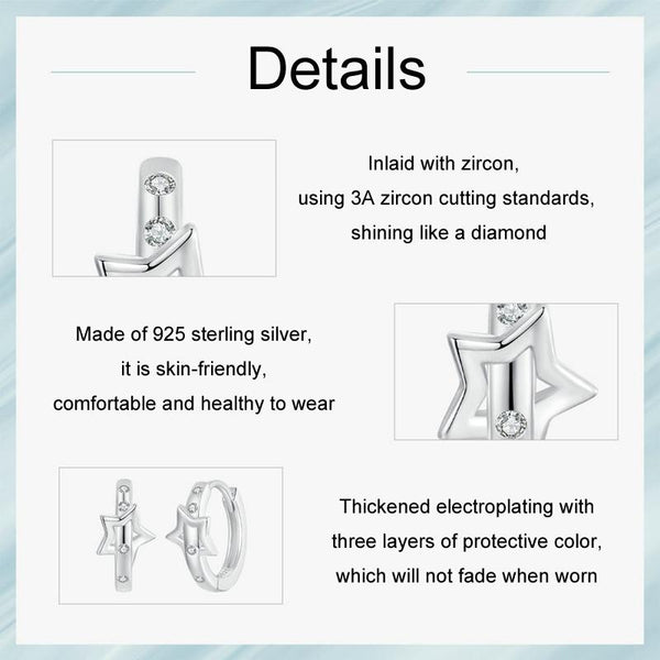 S925 Sterling Silver Platinum-Plated Punk Style Belt Five-Pointed Star Ear Buckle(SCE1726)