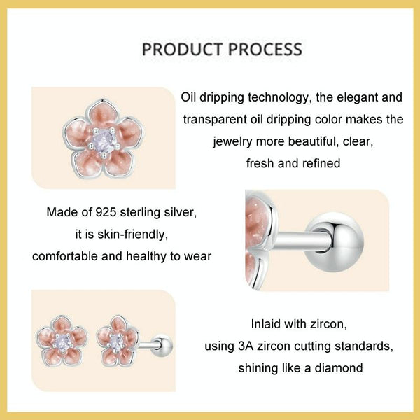 S925 Sterling Silver Platinum-plated Romantic Gradient Cherry Blossom Earrings(BSE992)