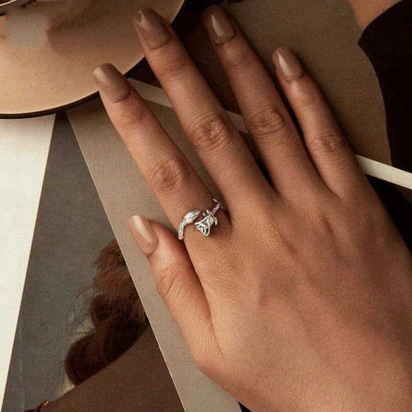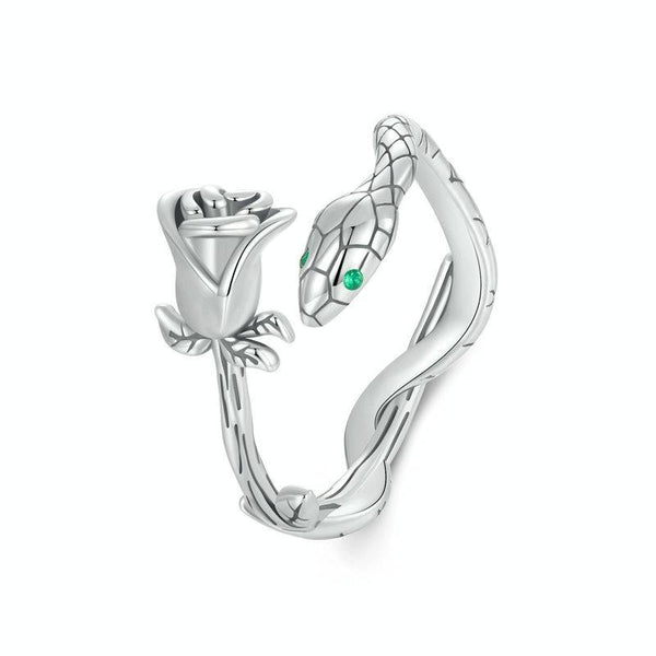 S925 Sterling Silver Platinum-plated Snake Rose Open Ring, Model: SCR1041-E