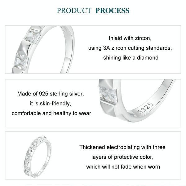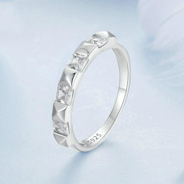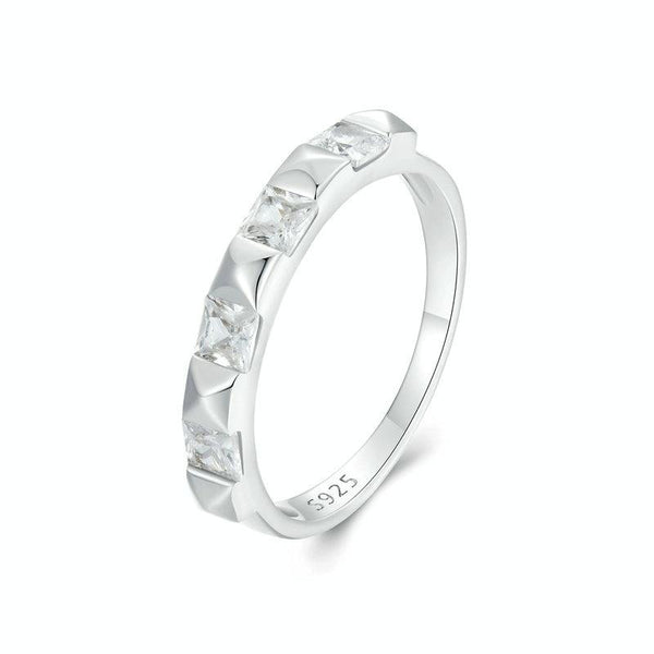 S925 Sterling Silver Platinum Plated Sparkling Simple Rivet Ring, Size: No.6(BSR530)