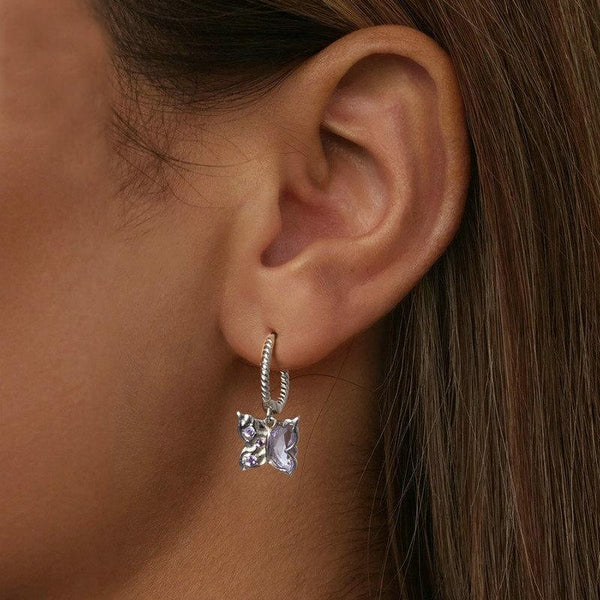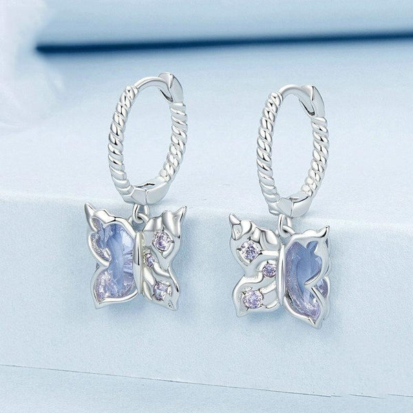 S925 Sterling Silver Platinum-plated Special-shaped Wing Butterfly Earrings(BSE986)