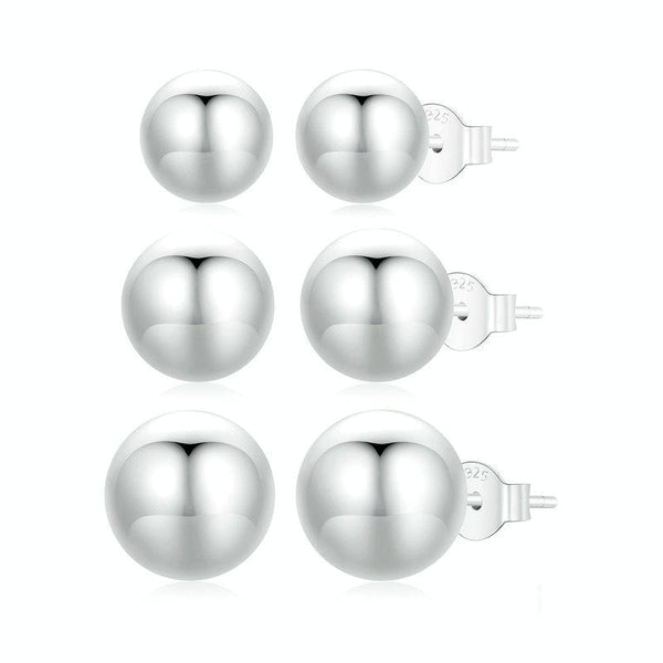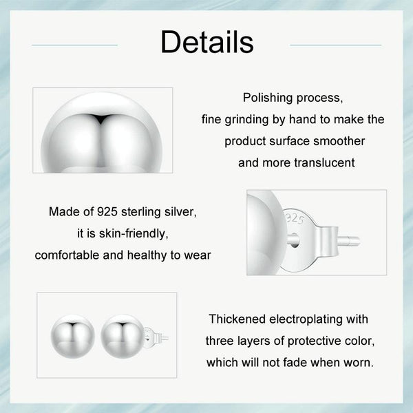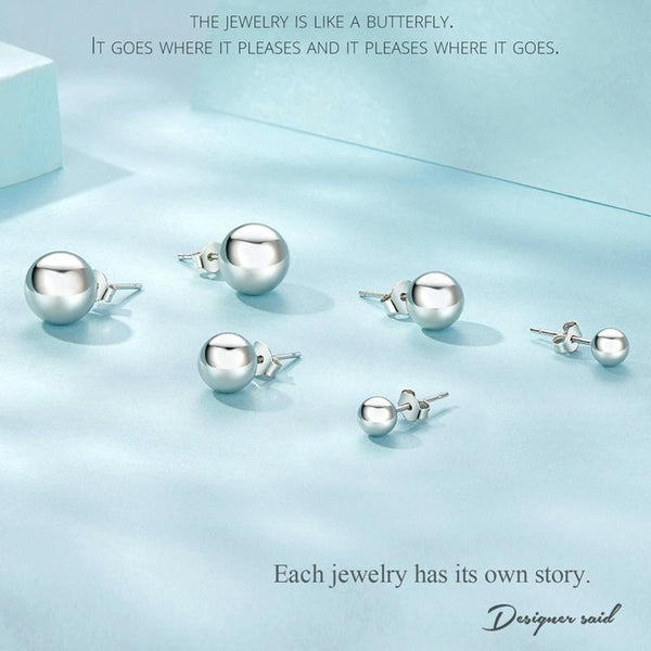 S925 Sterling Silver Platinum Plated Spherical Women Earrings, Size: S