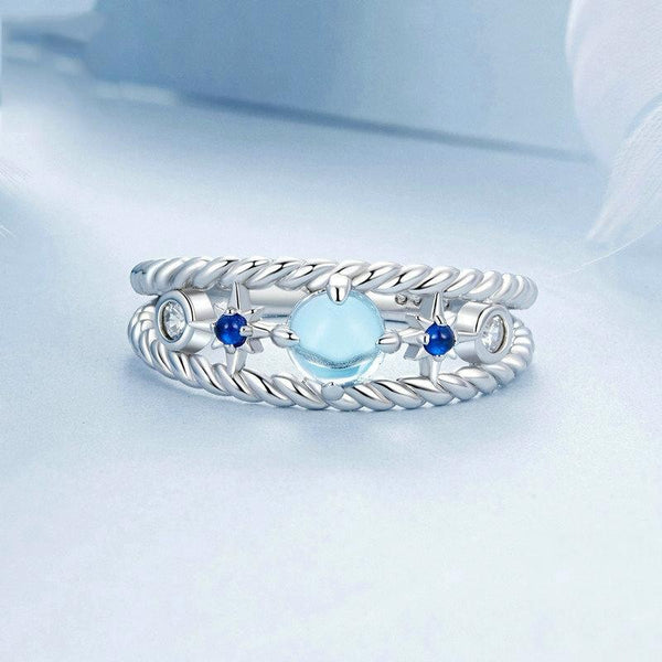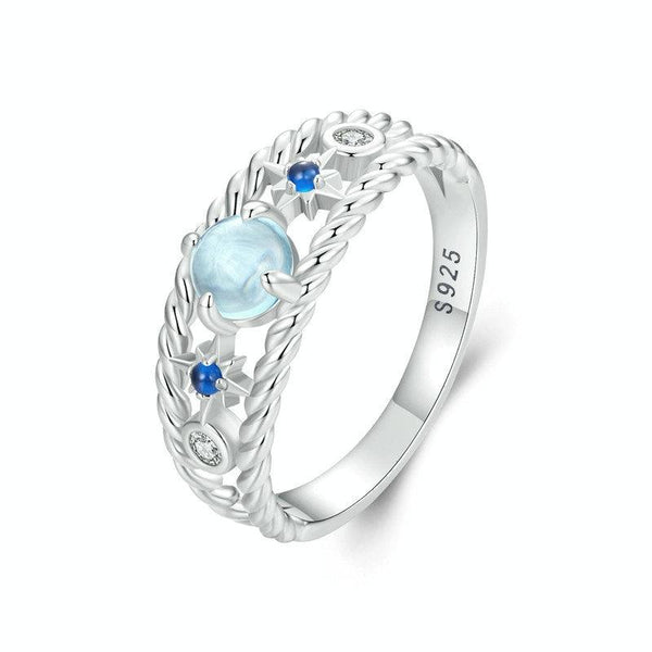 S925 Sterling Silver Platinum Plated Starry Hollow Ring, Size: No.7