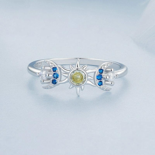 S925 Sterling Silver Platinum Plated Sun Moon Surround Ring, Size: No. 8