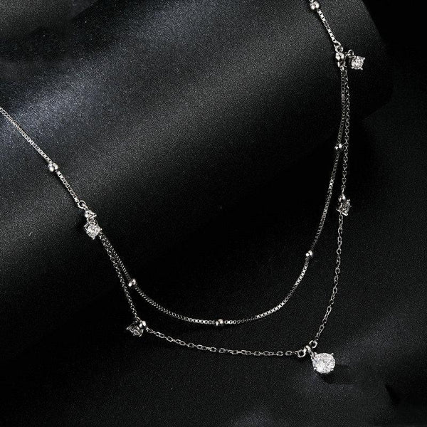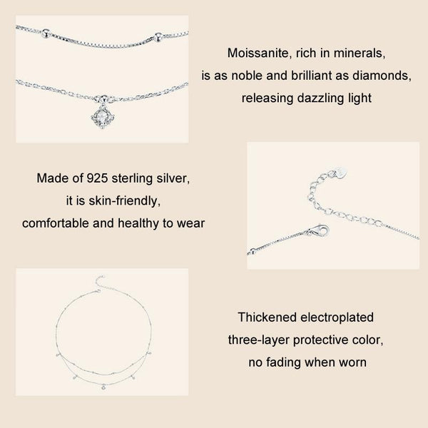 S925 Sterling Silver Platinum-plated Tassel Moissanite Double-layer Necklace(MSN034)