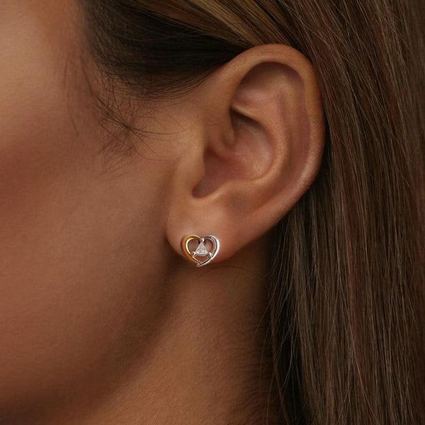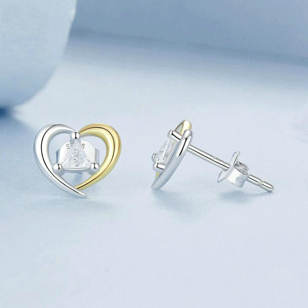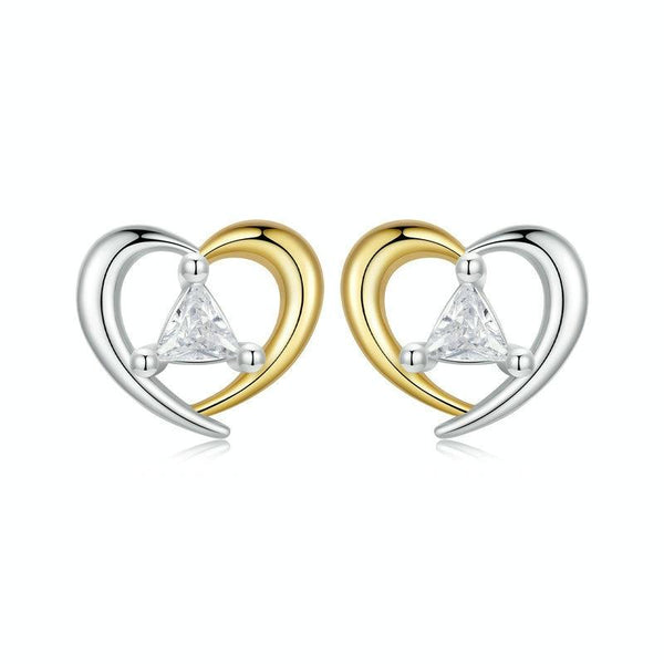 S925 Sterling Silver Platinum-Plated Two-Tone Heart Earrings(BSE1027)