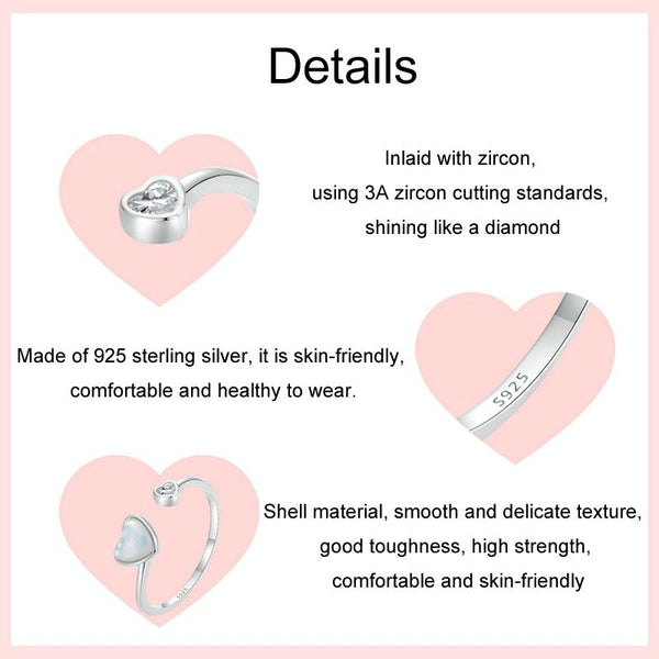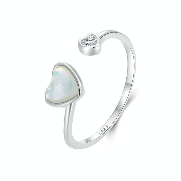 S925 Sterling Silver Platinum-plated White Shell Love Adjustable Open Ring(BSR520-E)