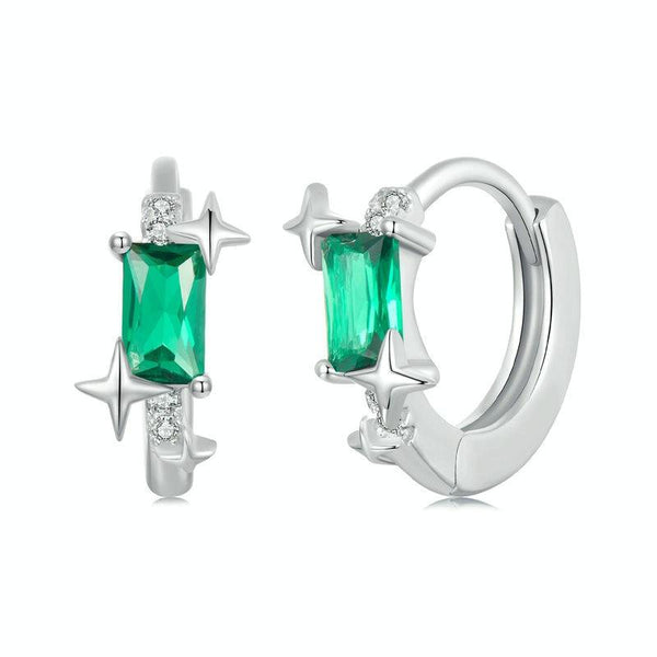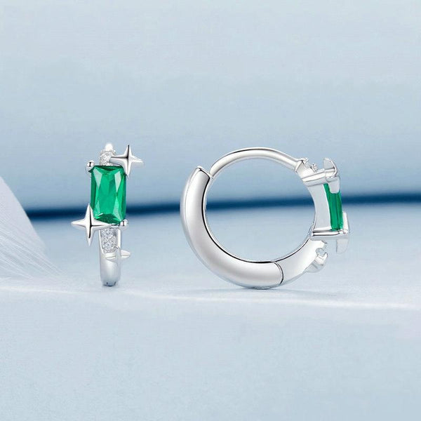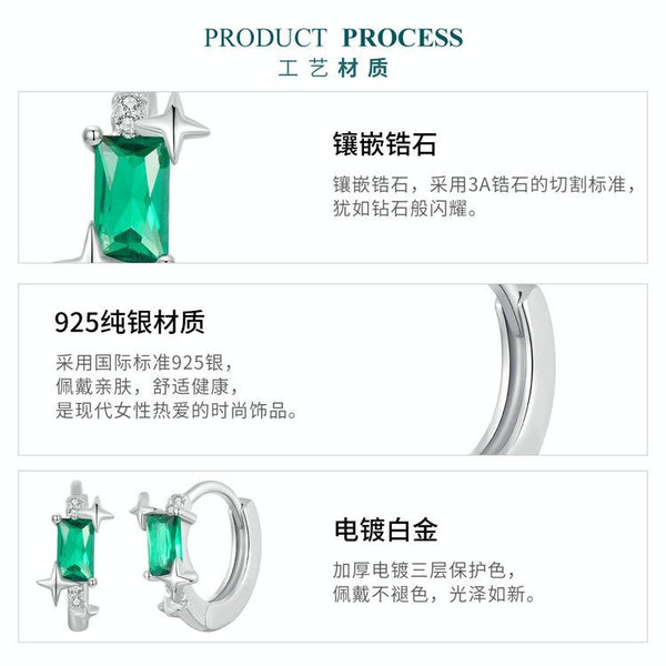 S925 Sterling Silver Platinum-plated Zircon Emerald Shining Earrings(BSE1036)
