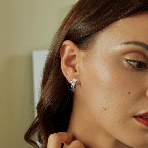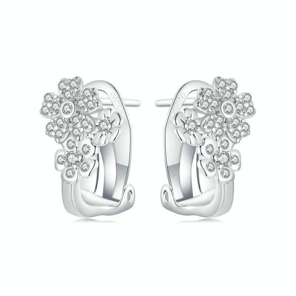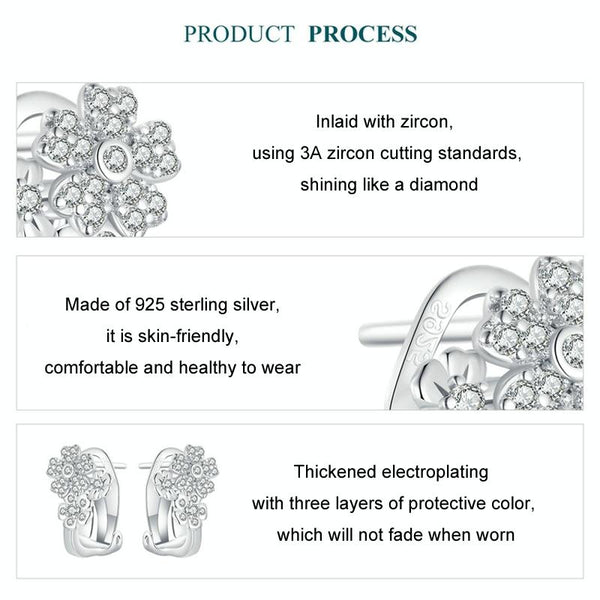 S925 Sterling Silver Platinum Plated Zircon Flower Earrings(BSE975)