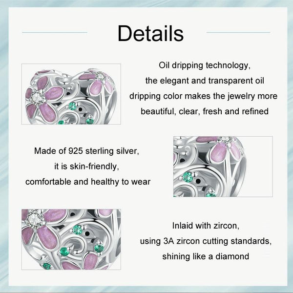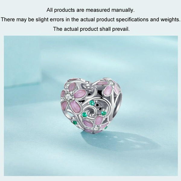 S925 Sterling Silver Platinum-plated Zircon Heart-shaped Flower Vine DIY Beads(SCC2739)
