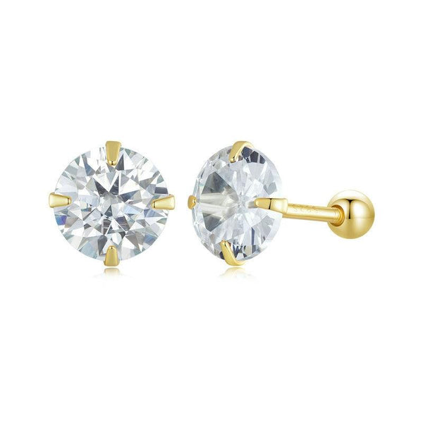 S925 Sterling Silver Platinum Plated Zircon Stud Earrings Jewelry, Color: Gold White Zirconia L