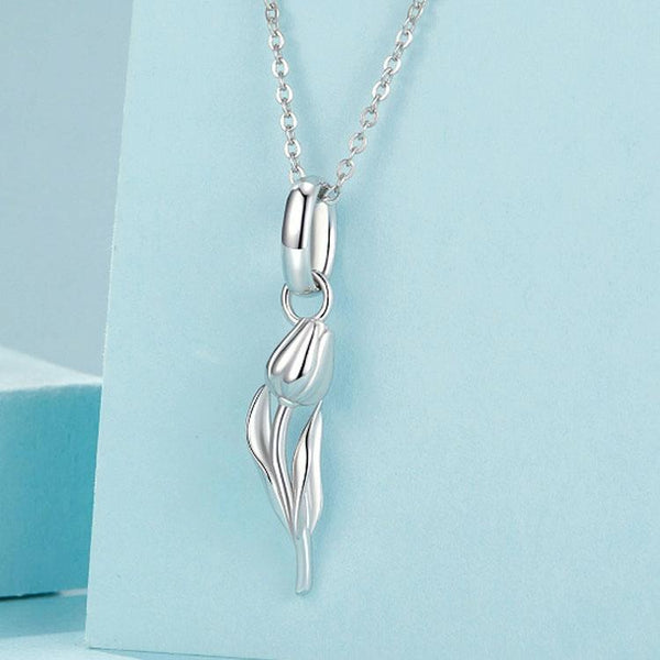 S925 Sterling Silver Platinum Romantic and Warm Tulip Beaded Jewelry Pendants(SCC2886)