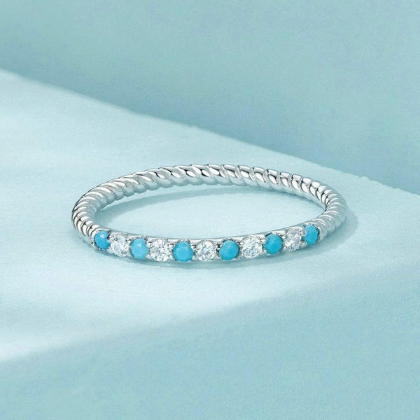 S925 Sterling Silver Platinum Zircon Vintage Blue Turquoise Ring(No.7)