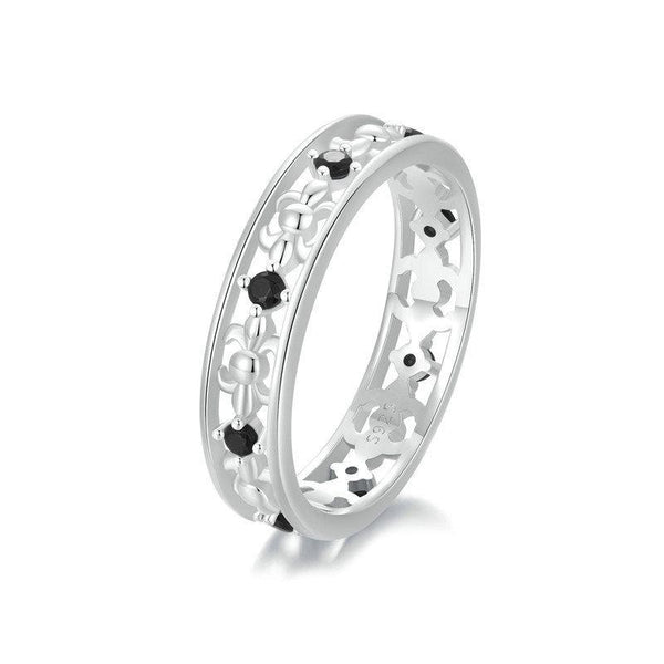 S925 Sterling Silver Platinum Zircon Vintage Iris Hollow Pattern Ring(No.8)