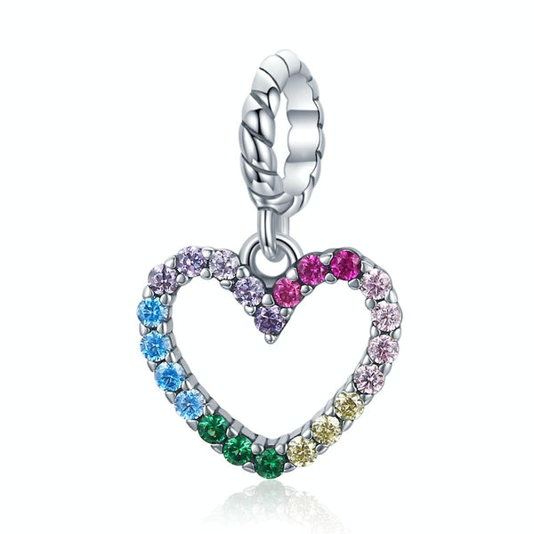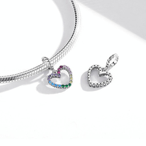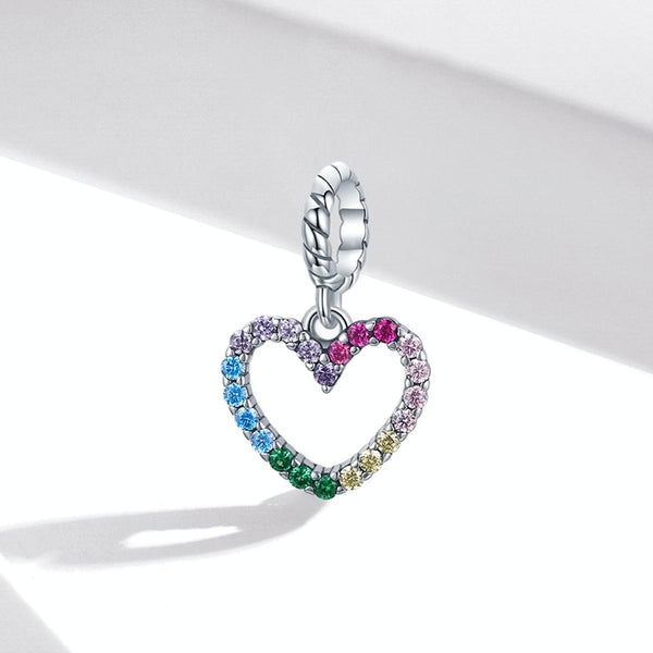 S925 Sterling Silver Rainbow Heart Pendant DIY Bracelet Necklace Accessories