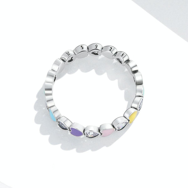 S925 Sterling Silver Rainbow Heart Zircon Women Ring, Size:8