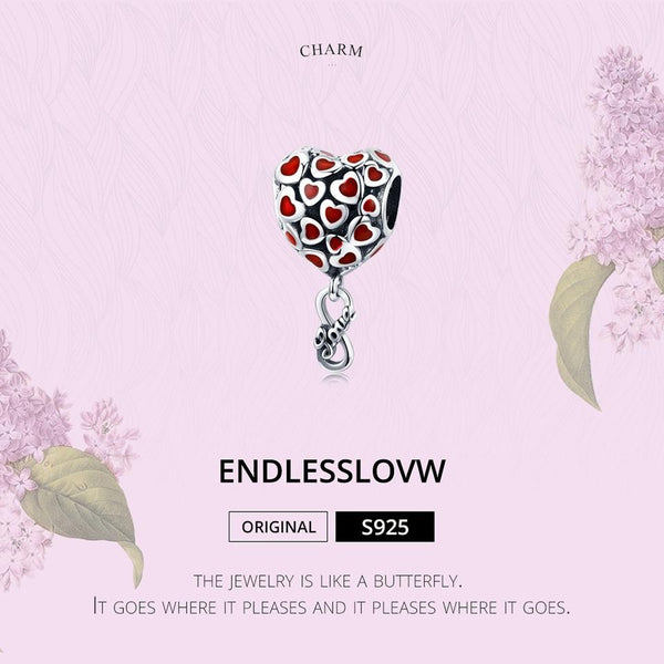 S925 Sterling Silver Red Heart Beads DIY Bracelet Necklace Accessories