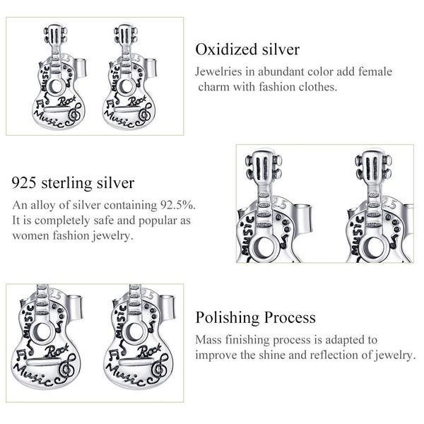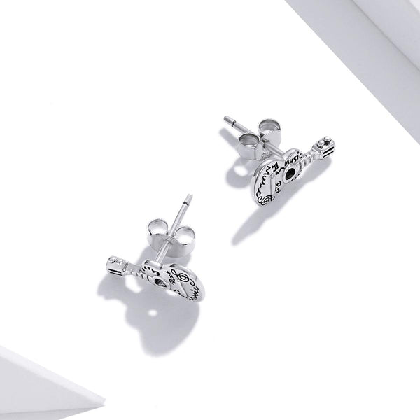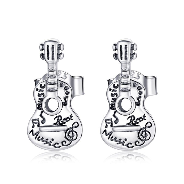 S925 Sterling Silver Retro Guitar Ear Studs Women Earrings