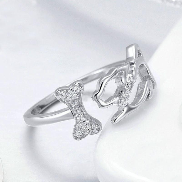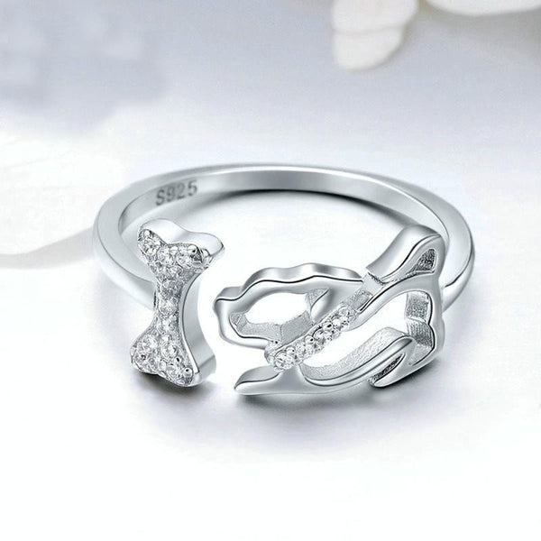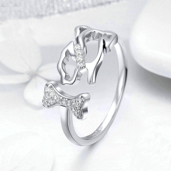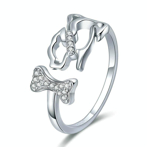 S925 Sterling Silver Ring Dog Companion Inlaid Zircon Ring