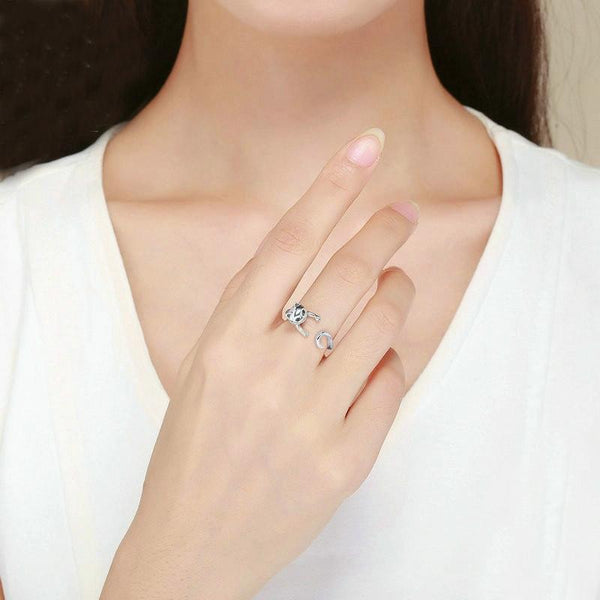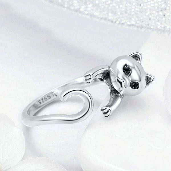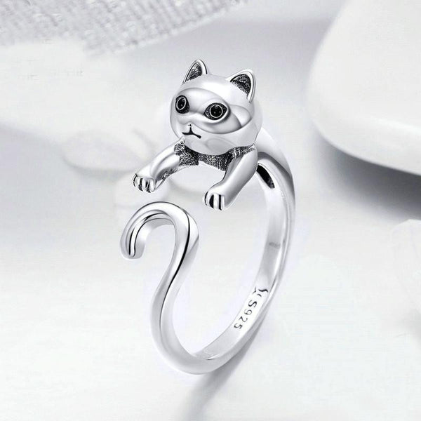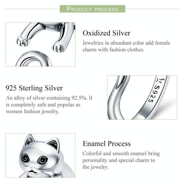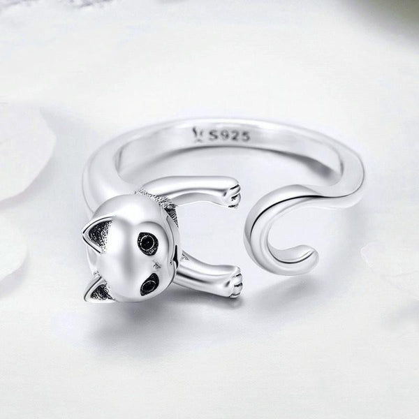 S925 Sterling Silver Ring Naughty Cat Inlaid Zircon Ring