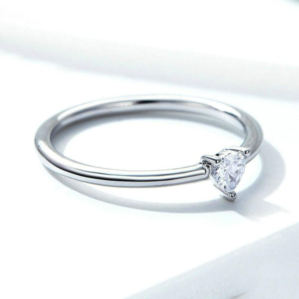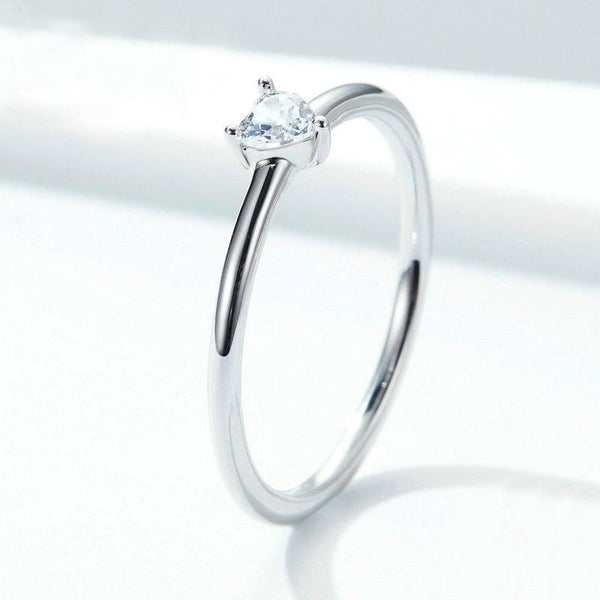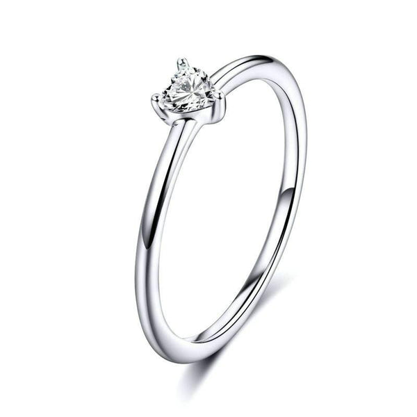 S925 Sterling Silver Ring Platinum Plated Heart Clear Ring, Size: 8 US Size