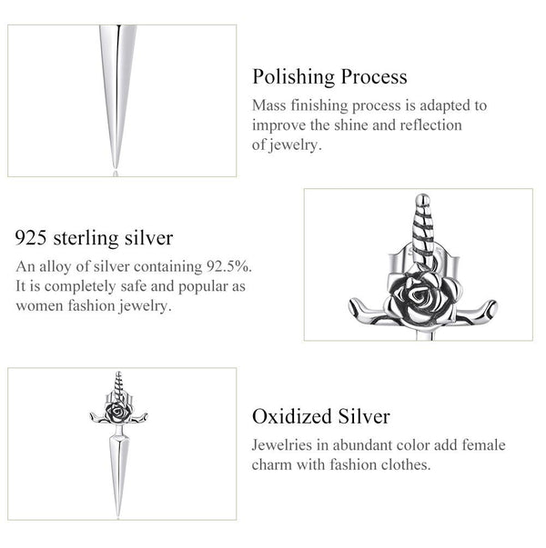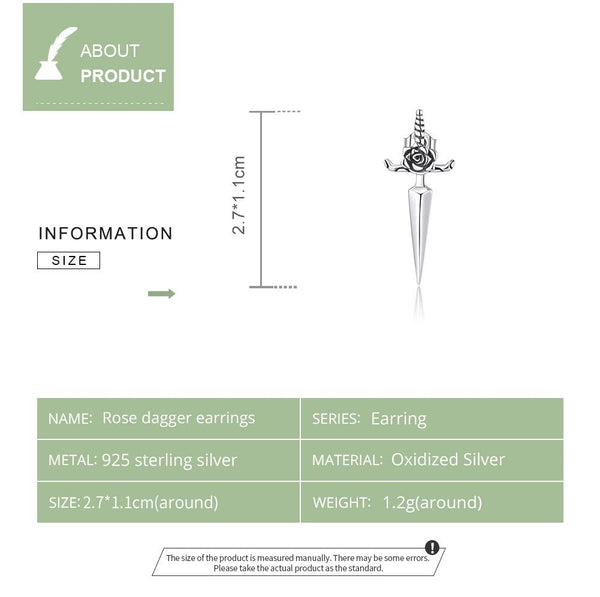 S925 Sterling Silver Rose Dagger Ear Stud Women Earrings