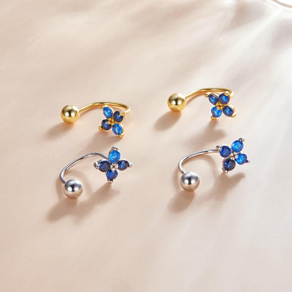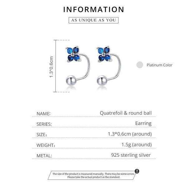 S925 Sterling Silver Round Beads Four-petal Flower Women Earrings(Silver)