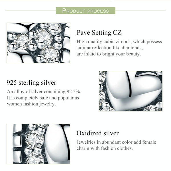 S925 Sterling Silver Shine My Heart Beads DIY Bracelet Necklace Accessories