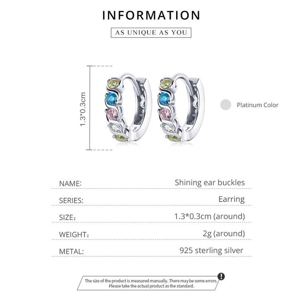 S925 Sterling Silver Shining Colorful Zircon Ear Buckle Women Earrings(Silver)