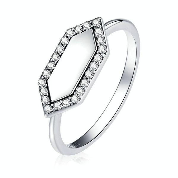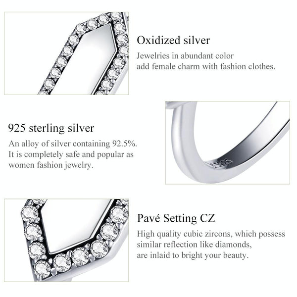 S925 Sterling Silver Shining Geometry Women Ring, Size:8