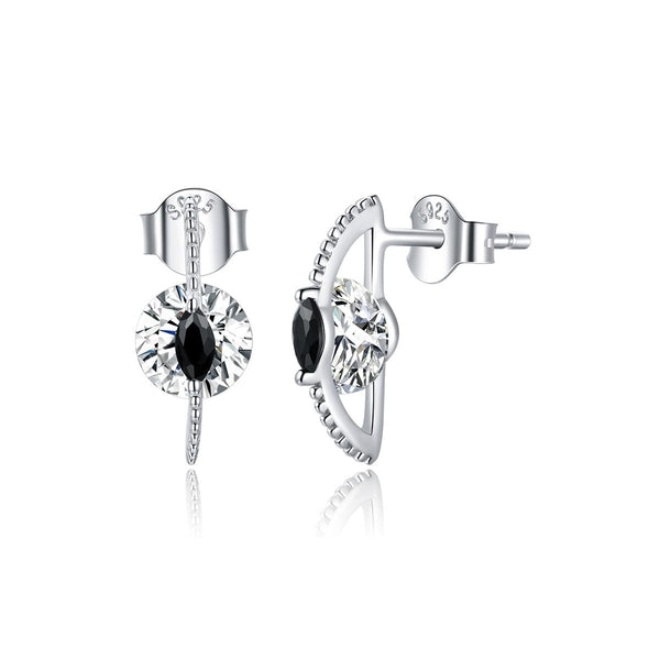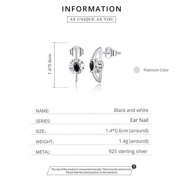S925 Sterling Silver Silver Black White Zircon Ear Studs Women Earrings