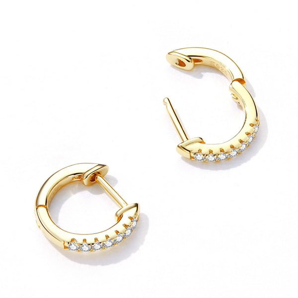 S925 Sterling Silver Simple Ear Buckle Women Earrings, Size:M(Gold)