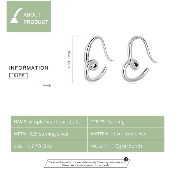 S925 Sterling Silver Simple Heart Ear Stud Women Earrings