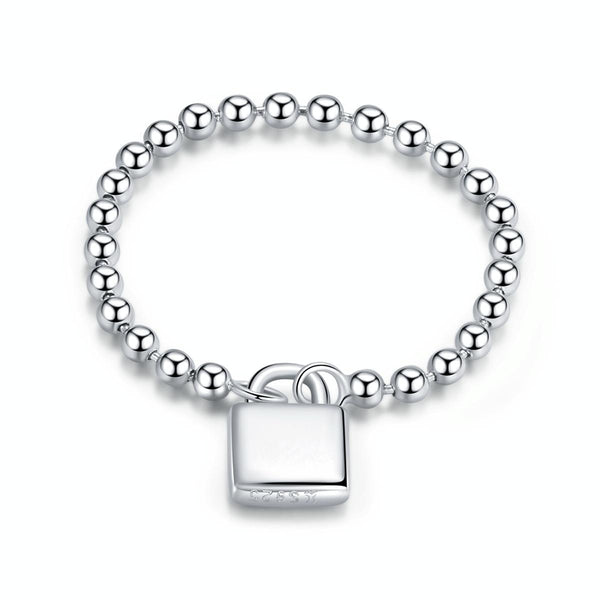 S925 Sterling Silver Simple Heart Lock Women Ring, Size:6
