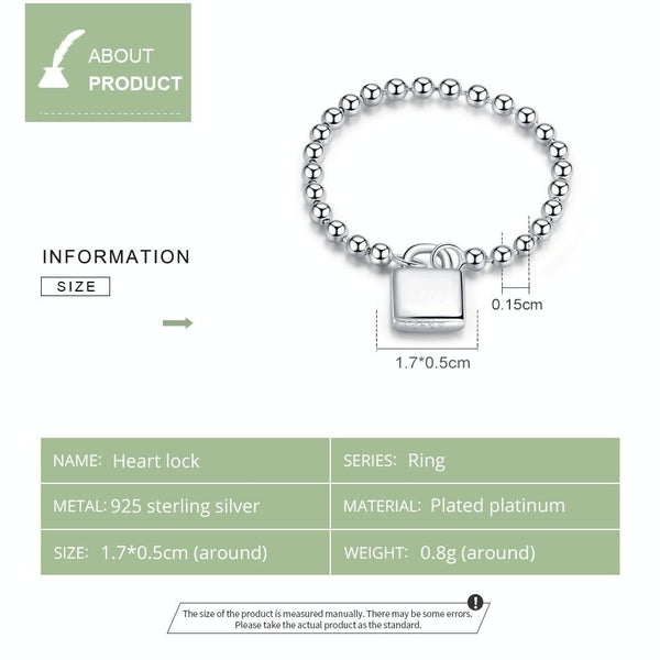S925 Sterling Silver Simple Heart Lock Women Ring, Size:8
