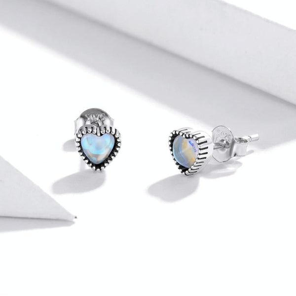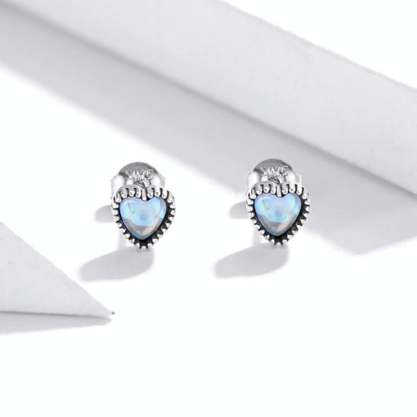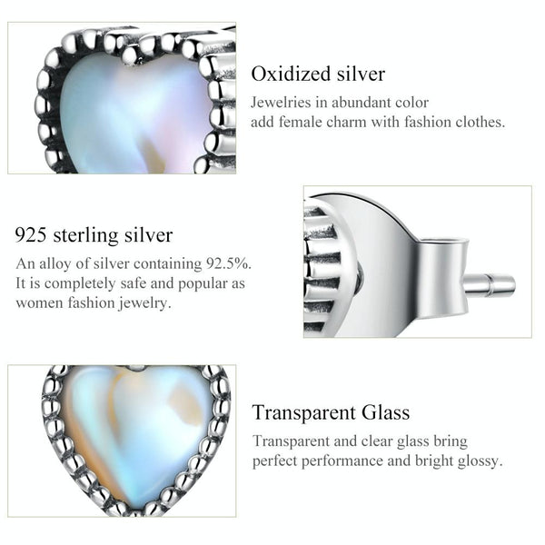 S925 Sterling Silver Simple Heart of Glass Earrings