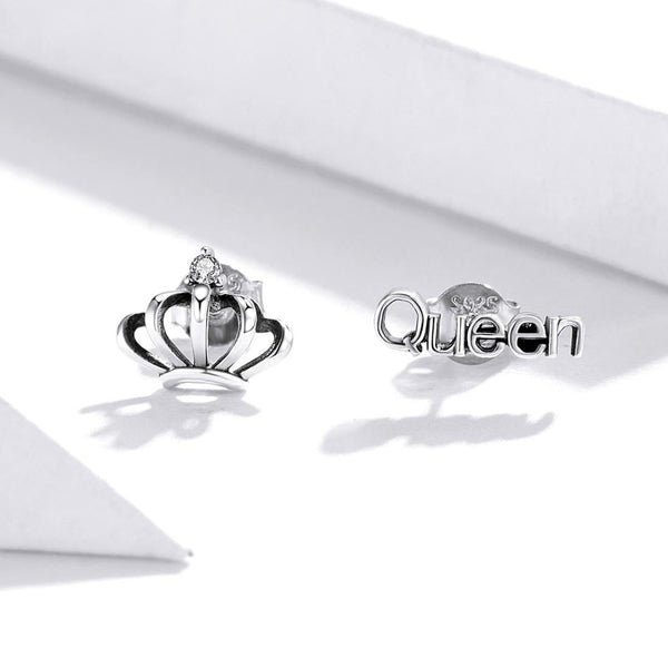 S925 Sterling Silver Simple Hollow Crown English Letters Earrings