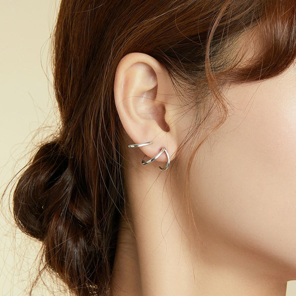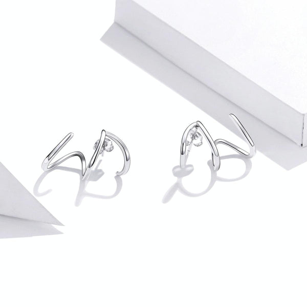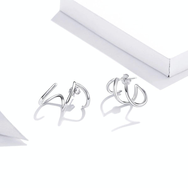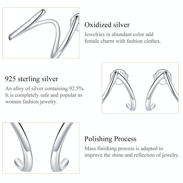 S925 Sterling Silver Simple Style Lines Women Earrings
