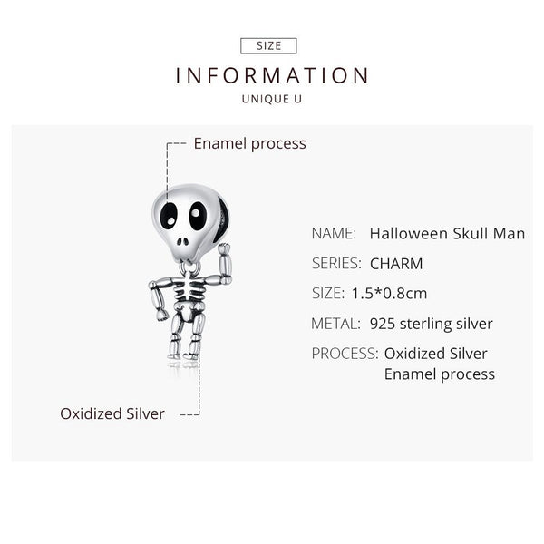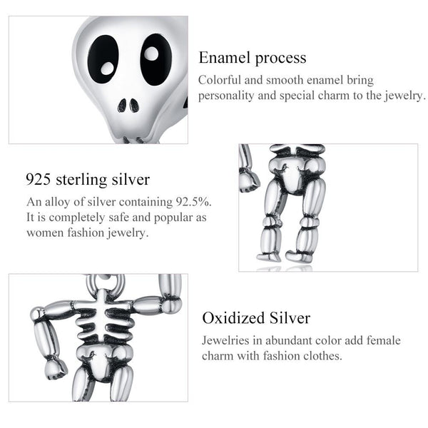 S925 Sterling Silver Skull Skeleton Beads DIY Bracelet Necklace Accessories