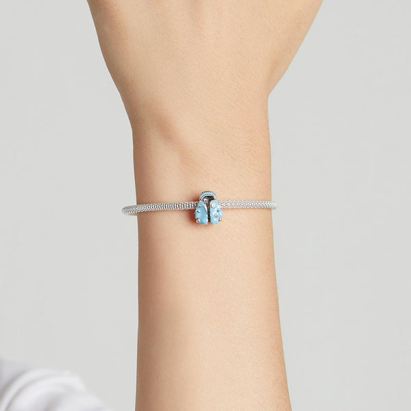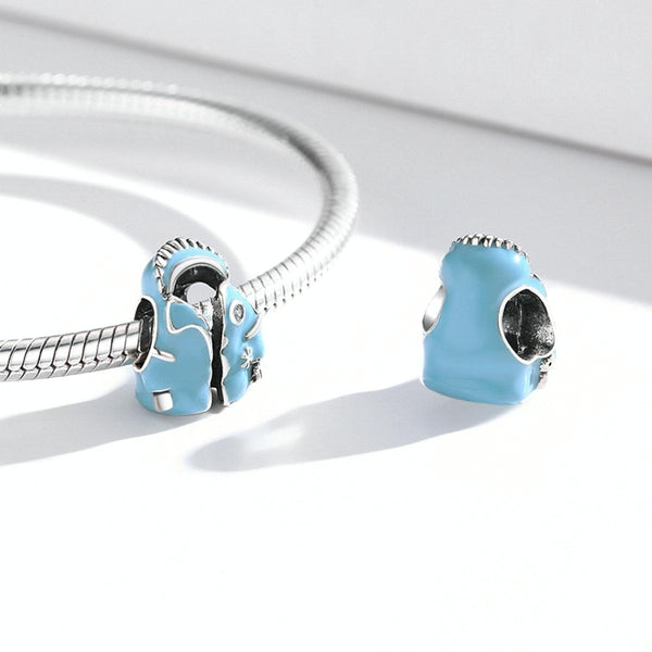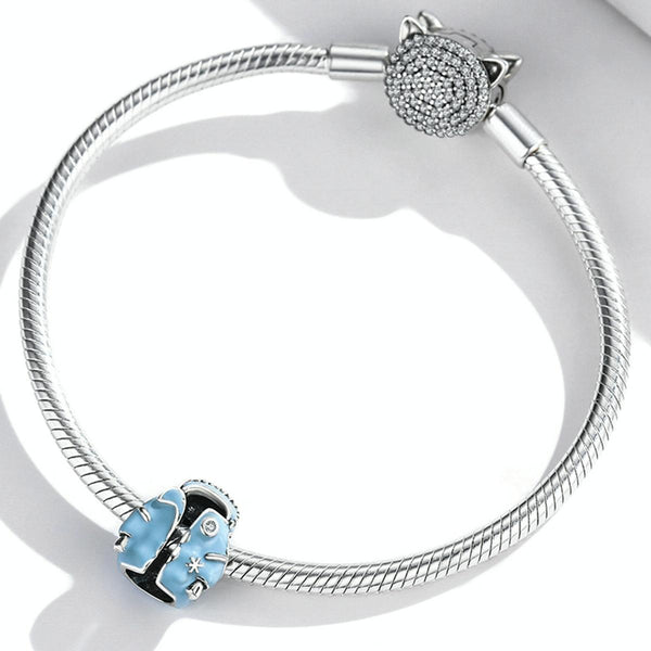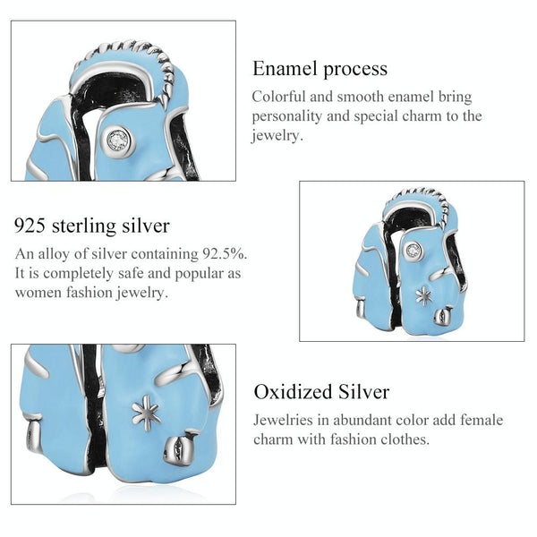 S925 Sterling Silver Sky Blue Down Jacket Beads DIY Bracelet Necklace Accessories