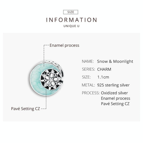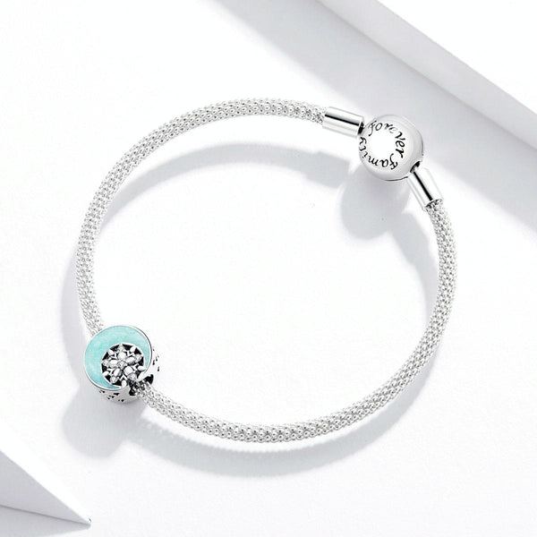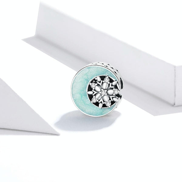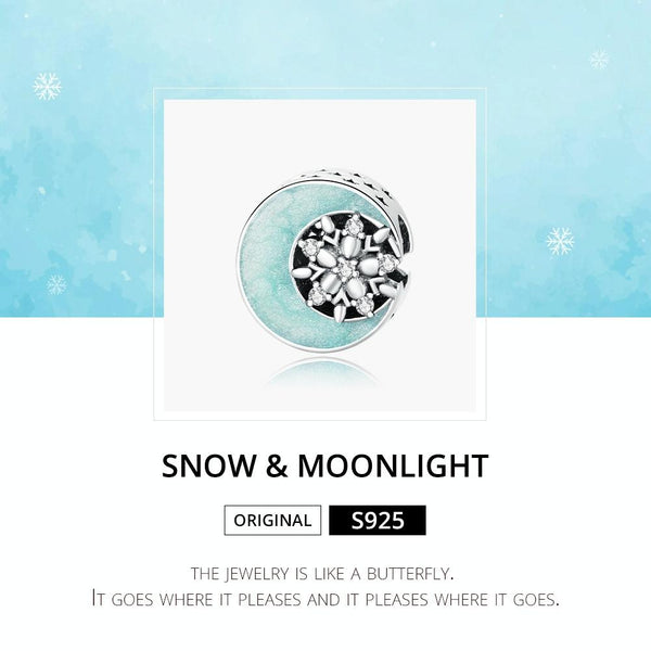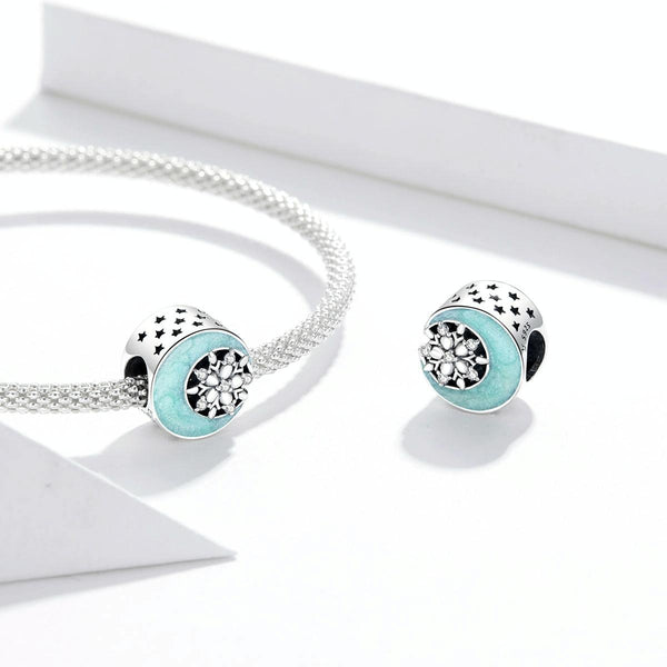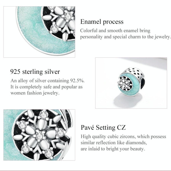 S925 Sterling Silver Snowy Moon Night Beads DIY Bracelet Necklace Accessories