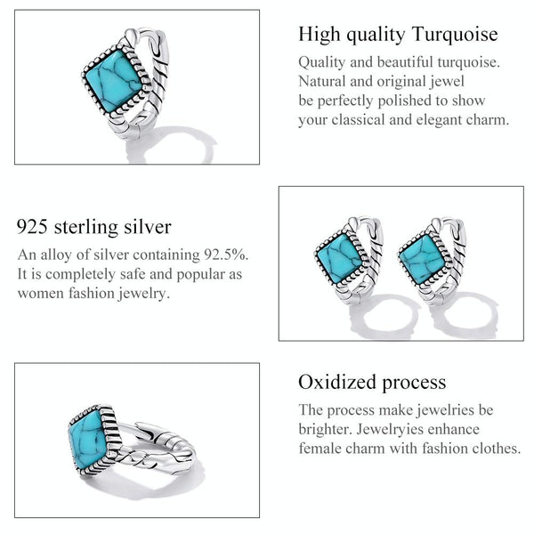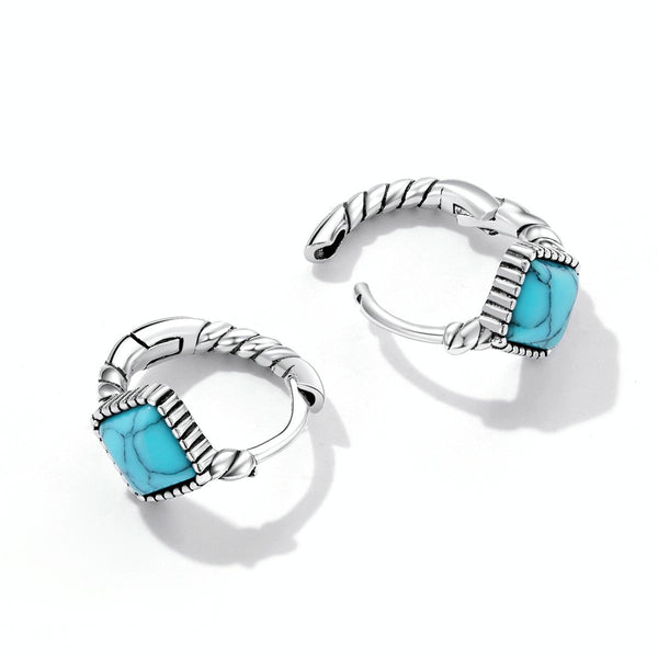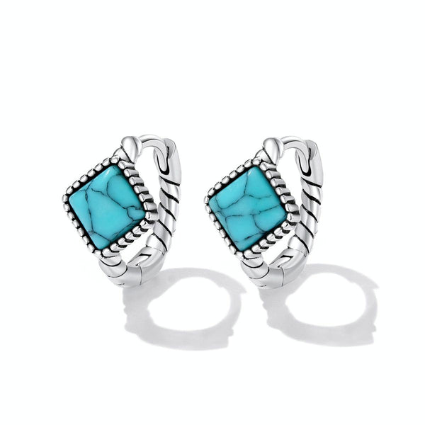 S925 Sterling Silver Square Turquoise Ear Buckle Women Earrings