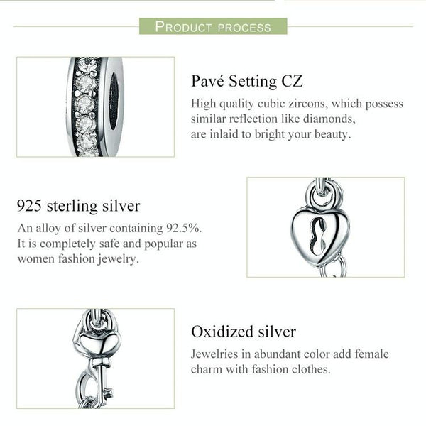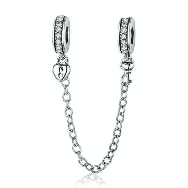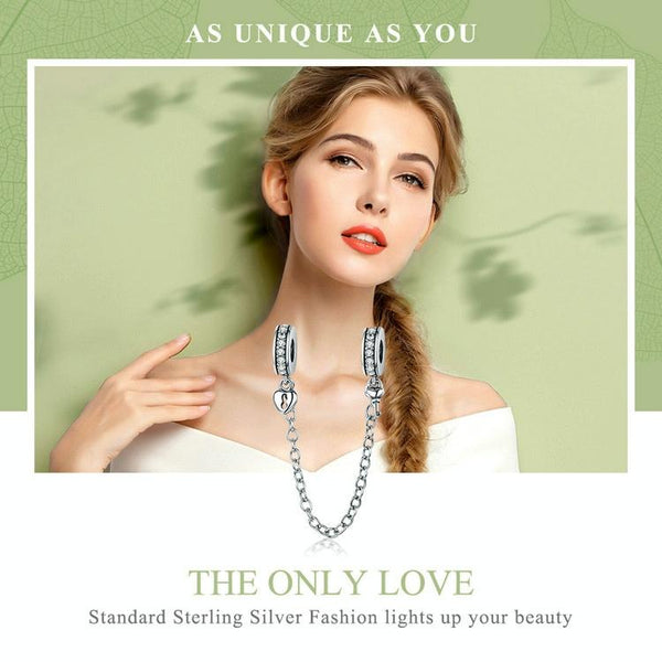 S925 Sterling Silver Stackable Heart-shaped Pendant Safety Chain
