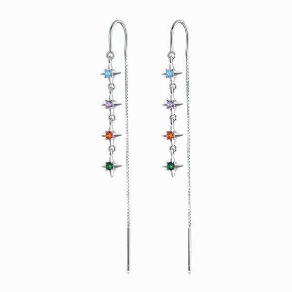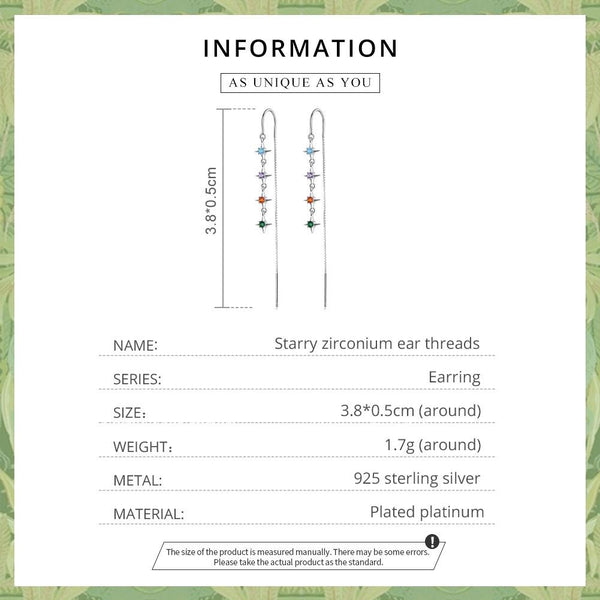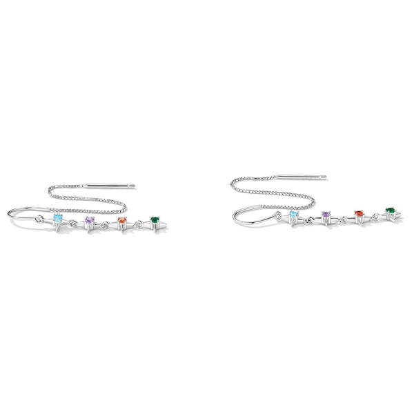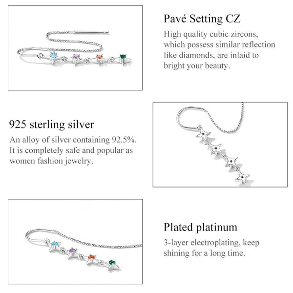 S925 Sterling Silver Star Colored Zircon Ear Line Women Earrings