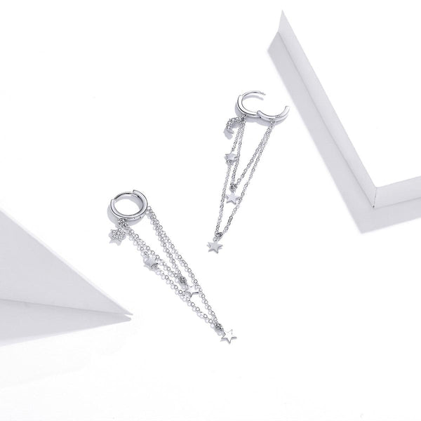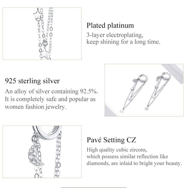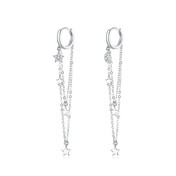 S925 Sterling Silver Star Moon Tassel Women Earrings