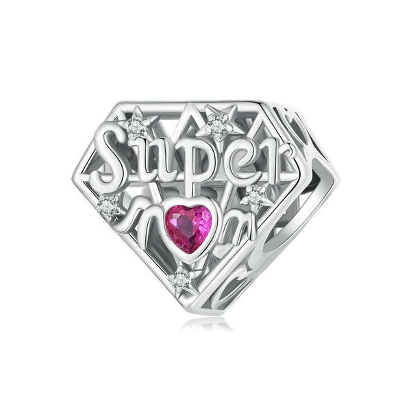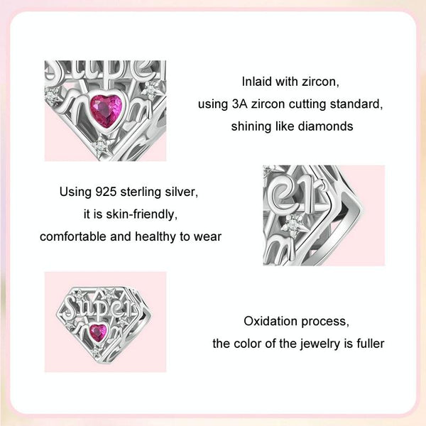 S925 Sterling Silver Super Mom Beaded DIY Jewelry(SCC2766)